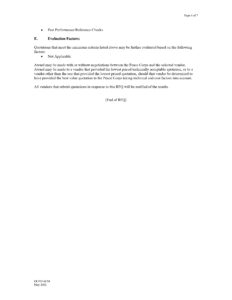 Peace Corps will evaluate all quotations received by the deadline based on the minimum requirements and/or evaluation factor(s) shown below. Contingent on the availability of funds and continued need for the supplies and/or services, at the end of the evaluation process, Peace Corps intends to award a firm-fixed-price contract for the purchase of the required supplies and/or services to the selected vendor.